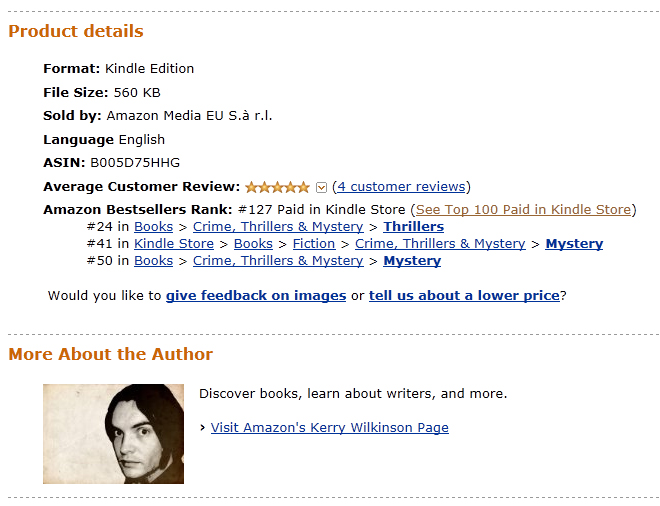 I’m now into the overall top-10 books on iTunes, the top-5 for crime books and in Amazon’s top-25 Thriller list.