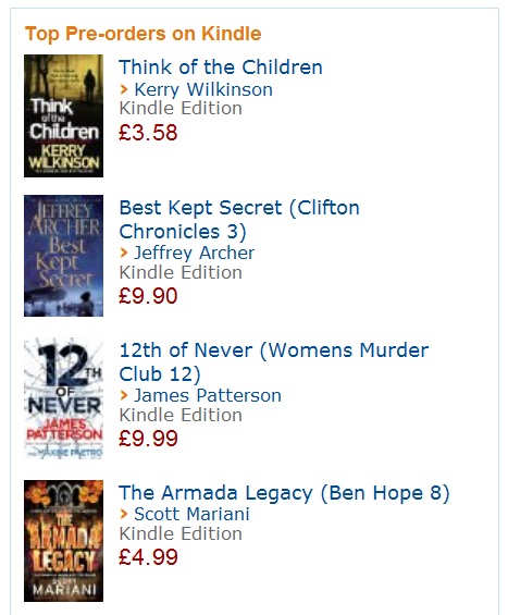 I’m not sure what to say, really. The publishers haven’t even begun marketing, yet the fourth Jessica Daniel book, Think of the Children, is the no.1 pre-order on Kindle in the UK, a full four weeks before it’s even out.