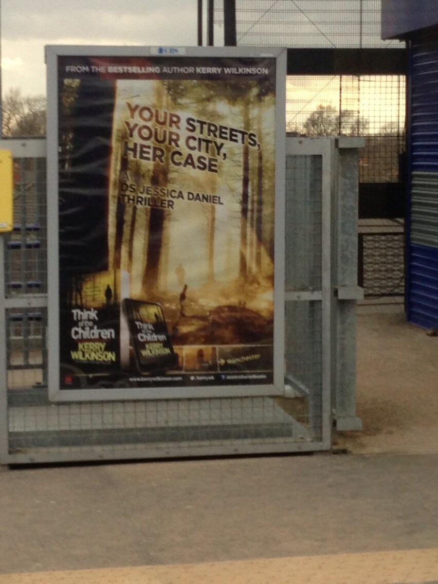 The books should be available in Tesco, Sainsbury’s, WH Smith, Waterstones and a bunch of other places. There are two scrolling banners in the Arndale centre if you live in Manchester, and around 90 train station posters around the north west. Photos of any of those count.